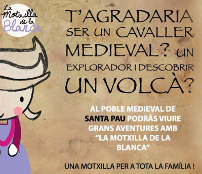 Si estáis pensando en hacer la actividad de la Mochila de la Blanca y estás buscando información (o la opinión de alguien que lo haya hecho…) aquí tenéis nuestra experiencia. No lo dudéis, ¡os lo pasaréis muy bien! Pequeños y mayores saldréis de Santa Pau refrescando el pasado medieval.